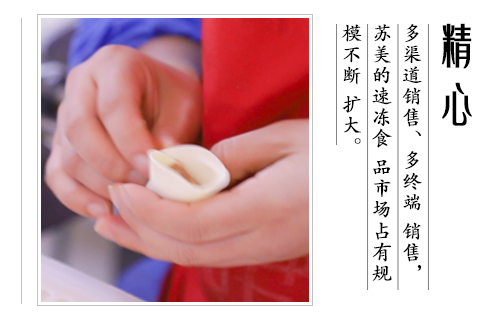 公司產(chǎn)品涵蓋速凍水餃(含手工水餃和大餡水餃)、速凍餛飩、速凍湯圓等三個系列、30多個花色品種,主要產(chǎn)品在華東、華西、華北的市場占有率達(dá)18%以上,其中蘇美的芹菜豬肉水餃、韭菜雞蛋水餃以其獨(dú)特的口感,大受消費(fèi)者好評,成為了新晉的網(wǎng)紅美食.